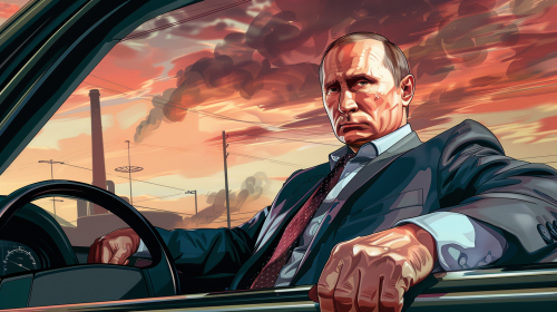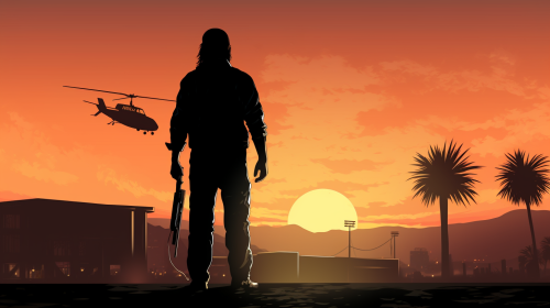 A Distant Terror, artwork by rockstar games, artwork of gta 5, cel shading, cel art, --ar 16:9