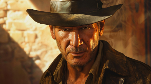 Indiana Jones as GTA 5 loading screen, typical artwork, Gangster --ar 16:9