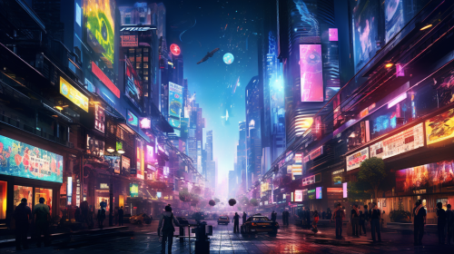 a futuristic cyberpunk city street. hyper realistic, detailed, high resolution, high detail, hyper quality, stylish, cinematic, poster, photo, magazine cover, movie poster, film camera, photography, 35mm lens, f/20, shutter speed 4s --ar 16:9
