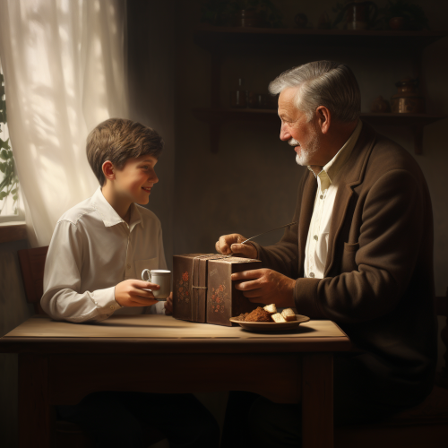 hand insert paper in a Box, on table five box open , 5 box, style 60 pop art illutration collage- real image - ar 9:16
