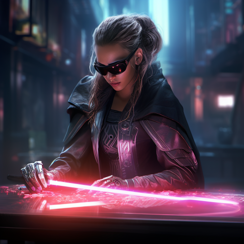 Visualize an image of a character who is a doctor in the dystopian universe of Cyberpunk 2077. The doctor should exhibit a futuristic appearance, incorporating both medical and cyberpunk aesthetics. They should be wearing a blend of practical medical attire and technologically advanced gear, adorned with neon accents and electronic components. Their attire may include a lab coat with augmented reality displays and cybernetic enhancements such as a robotic arm equipped with medical tools. The character should be situated in a high-tech medical facility within Night City, surrounded by advanced medical equipment, illuminated screens displaying patient vitals, and holographic interfaces. The atmosphere of the room should be a mix of sterile medical ambiance and chaotic cyberpunk elements, with a mix of cool and neon lighting. The doctor should have a focused and composed expression, showcasing their commitment to healing in a world rife with futuristic challenges and ethical dilemmas. The color scheme should balance the clinical whites and metallics of medical equipment with the vibrant neon hues characteristic of the cyberpunk genre, to highlight the contrast between the doctor's healing mission and the tumultuous world of Cyberpunk 2077. --s 750