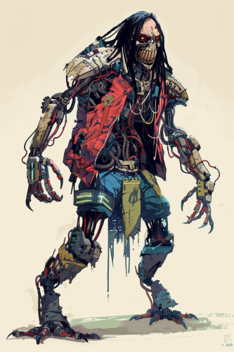 The same cyborg is now depicted standing on the edge of a futuristic, yet decaying metropolis. The cityscape is a mix of sharp, black skyscrapers and vibrant red neon signs, all set against a white, overcast sky. The cyborg gazes at the bustling human life below, a world that feels alien despite its familiarity. A faint red glow emanates from its chest, a symbol of the longing to belong, yet it remains on the fringes, an outsider looking in. The city’s lights flicker as if the cyborg’s presence is disrupting the flow of reality. The scene is infused with the colors red, white, and black, highlighting the contrast between isolation and the yearning for connection. Keywords: cyberpunk, urban decay, neon lights, alienation, longing. --s 250