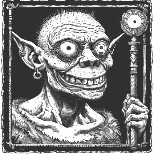 hand drawn style image with dominant black and red colors, highlighted, spiritual monster, one-eyed sloth on its head like a cyclops, big fingernails and toenails like a sloth, giant mouth on its belly, spiritual atmosphere, hand drawn style, focus on every detail, sharp details, high quality, high quality graphics, 4k, artstation --v 6.0 --ar 9:16