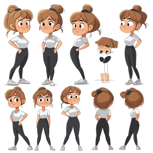 various poses and different angles of a mum with long hair ,, character sheet, in the style of The Powerpuff Girlsm, cartoon 2d , small body, big head --style raw