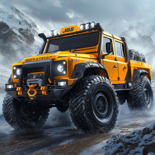 jcb enter the truck 4x4 space with a large pick up truck. Must have off-road capability of the land rover defender and tactility of JCB in yellow, black and white