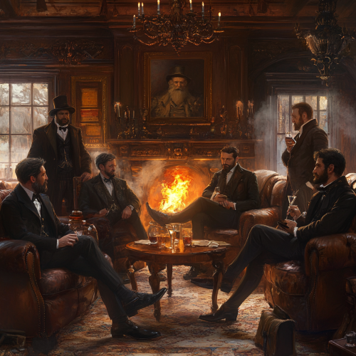 "A group of Black men surrounding a central White person, depicting 'The Education Trap.' The scene includes dark, ominous lighting , Demon, Warlock, Night Photography --ar 16:9