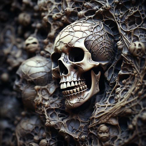 **a formless texture covering the page made of bone and skin. There should be no image, just a texture. Bones and skin intertwining with eachother, maximum resolution, extreme detail, the entire page should be a texture --no skull --no skeleton --s 750
