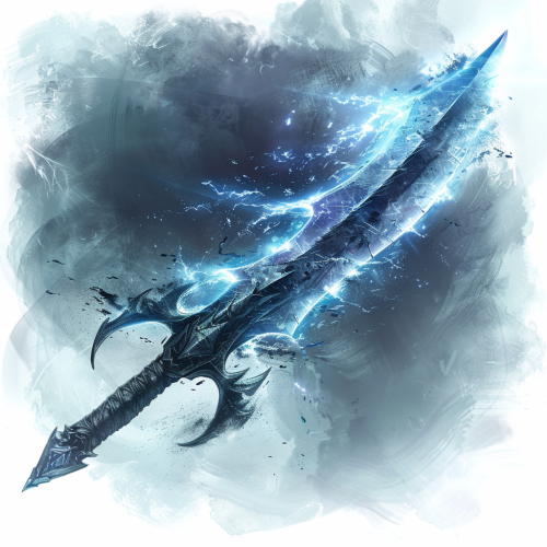 an evil sword with a notched and jagged blade, fantasy art icon, stylized, black background, ethereal effect