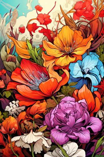 Botany graphics, lots of colors, graffiti style, detailed lines, --ar 2:3