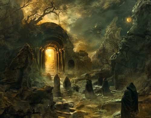 A horror-themed fantasy photo taken in medieval basement in the Warhammer Fantasy world of a group of robed and hooded men attempting a summoning. Room is lit only with candles. They chant and implore. Fantasy setting. Very detailed. Very realistic. On a CANON EOS C500 MARK II, f/22, Shutter Speed 1/ 1000, ISO 1000, 55mm lens, low lighting, cinematic scene, fx, HDR, epic composition, cinematic photo, hyper - realistic, hyper - detailed, cinematic lighting, particle effects, action photography, hyper realistic, 8k resolution, unreal engine, photorealistic masterpiece, smooth, real photography, full hd, Megapixel, Pro Photo RGB, VR, Good, Massive, Half rear Lighting, Backlight, Incandescent, Optical Fiber, Moody Lighting, Studio Lighting, Soft Lighting, Volumetric, Conte - Jour, Beautiful Lighting, Accent Lighting, Screen, Ray Tracing Global Illumination, Optics, Scattering, Glowing, Shadows, Rough, Shimmering, Ray Tracing Reflections, Lumen Reflections, Screen Space Reflections, Diffraction Grading, Chromatic Aberration, GB Displacement, Scan Lines, Ray Traced, Ray Tracing Ambient Occlusion, Anti - Aliasing, FKAA, TXAA, RTX, SSAO, Shaders, OpenGL - Shaders, GLSL, hyperrealistic photography --s 750 --ar 14:9 --v 5.2