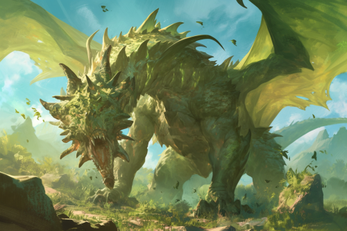 Grimdark mystic elder savage malevolent meadow Ryu dragon from Age of Sigmar, full body, anime style, huge skin blisters, slimy scales, body runes, high fantasy, digital art, masterpiece painting, ultra detailed, ultra high definition, 8K resolution, 3D shading, superior quality, cover illustration, complex design, luminous highlights, rich vibrant colours, hyperrealistic, meticulously hyper detailed, high contrast, artstation --niji 6 --ar 3:2
