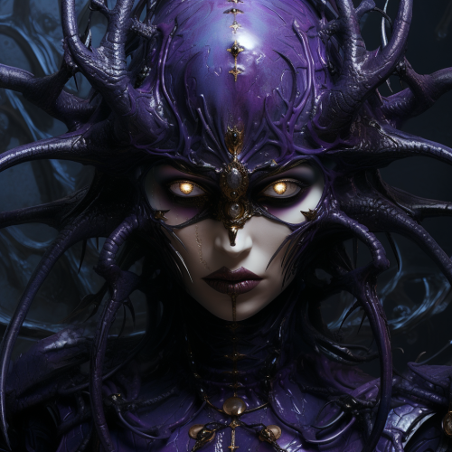 Portrait of Dark Elf Spider Priestess in Black and Violet