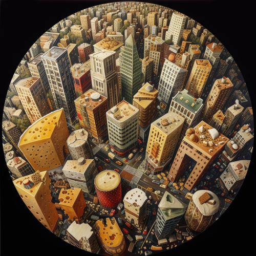 a food truck in the city that is run by human-sized rats. they are serving hunks of cheese wrapped in tin foil, and humans are standing in line to get the cheese from the large rats in the truck. ultrarealistic --v 6.1