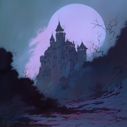 Beautiful 1978 Dark Fantasy animated background, oil painting, in the style of Ralph Bakshi, Eric Belisle, featuring a foreboding Orphanage annexed to The Abbey of Whispers, where the atmosphere suggests a hidden curriculum of thievery and underworld secrets, with vibrant colour washes and rough pencil outlines, emphasising the eerie and mysterious essence of the place. The sky is tumultuous and splotchy, enhancing the ominous feeling. A dramatic angle from below frames the orphanage and abbey, making them loom over the viewer. The contrasting colours should make the architecture pop against the dreary sky, highlighting the menacing aura of the building, cinematic lighting, rim lighting, studio lighting, magical lighting, highest detail, intrinsic detail, alla prima, impasto, precise details, epic, intricate, masterpiece, expressive strokes, rough, blotchy, Disney style, 8K — ar 3:2 --niji