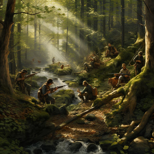 1970s dark fantasy medieval book illustration of a two leopard drug dealers in a medieval forest, the atmosphere is dark --ar 9:16 --style raw