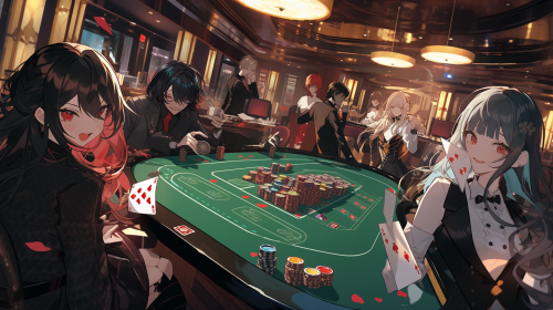 a lady was playing casino game, inside casino playing room's table --ar 800:60
