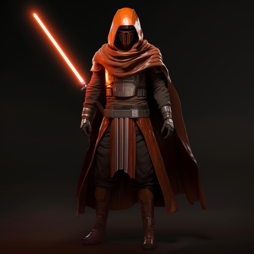 male Jedi, orange lightsaber, shoulder and chest armor, armored boots