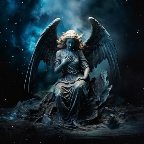 gothic stone angel statue deep in space, ephemeral and holy, nebula galaxy stars
