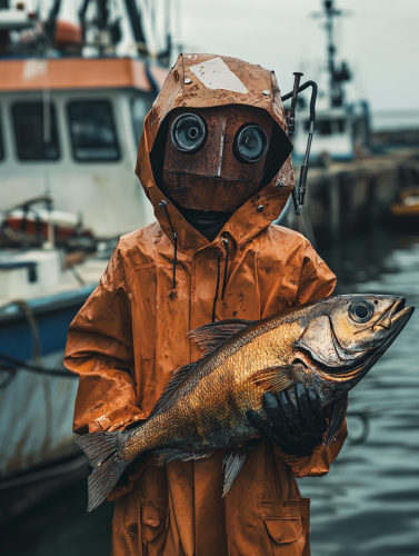child robot with yellow and black details, cute face, cinematic design, black background --v 6.0 --style raw --stylize 20 --chaos 20