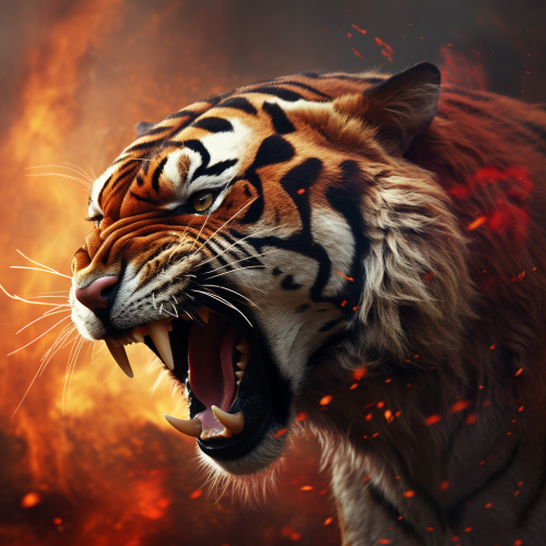 hyperrealistic art with dramatic tones, a roaring tiger with a dark background, wildlife art, extreme close up, intense, detailed, tiger, fur, dark, shadow, texture, contrast, dramatic filter, high contrast lighting, monochromatic colors, dramatic composition, tigers face in foreground, dark background --ar 9:16
