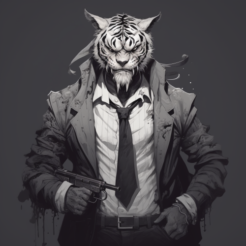 Gangster Tiger. Male. Portrait. --style 3fsE3uZyG4D --v 5.2