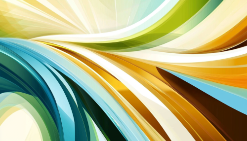 Abstract vector art with lines and stripes in the colors of blue, green, brown, yellow, white, and orange. The background is an archway with horizontal rays coming out from it. It's a simple yet colorful design that would make for a great poster or banner. --ar 128:73