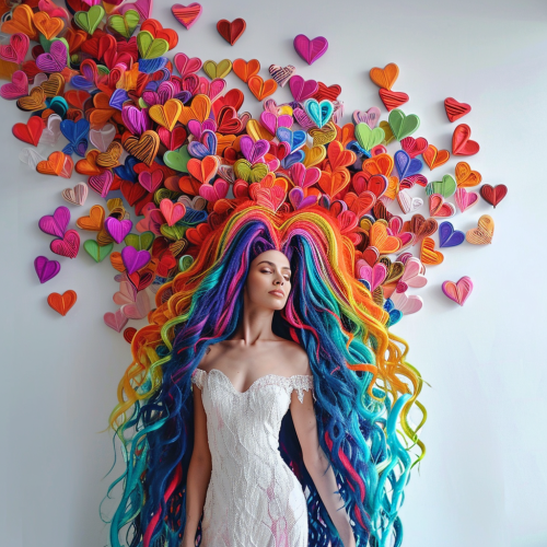 Dark Wall with Neon Signs of Broken Hearts, Red Kisses, and Flowers - Cinematic 8K Real Photo