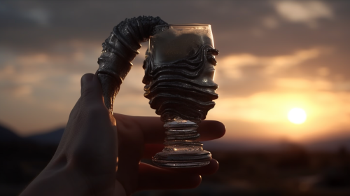 Screengrab from a ridley scott film of an H. R. Giger inspired alien tentacle holding a glass of whiskey, photorealistic, side shot, sunset background, photography, photorealistic, 4K resolution, high detail --ar 16:9 --v 5.0