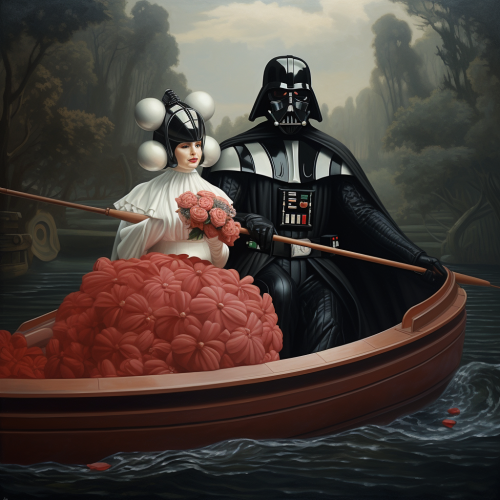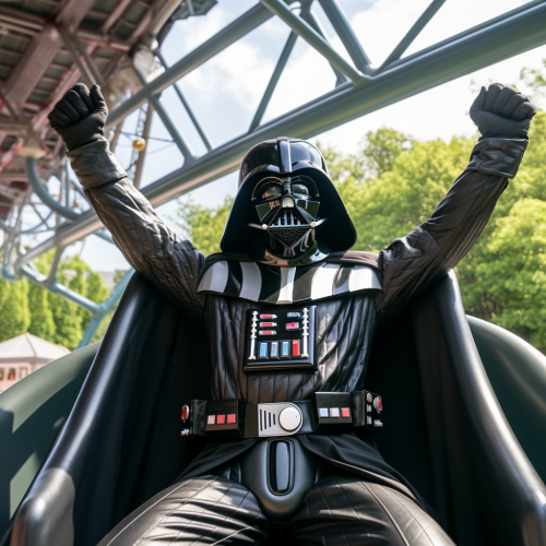 Draw a picture of Darth Vader with a Santa Claus hat on his head, and instead of holding a lightsaber, he is holding a candy cane --v 5.0