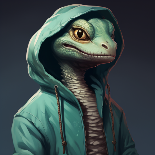 a cartoon lizard character wearing a puffy vest in the style of rick and morty