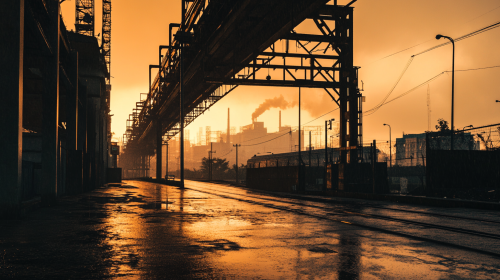 chaotic conveyor belt system, industrial, clean, white and bright hall, white floor, purple and vibrant green accents --ar 9:16