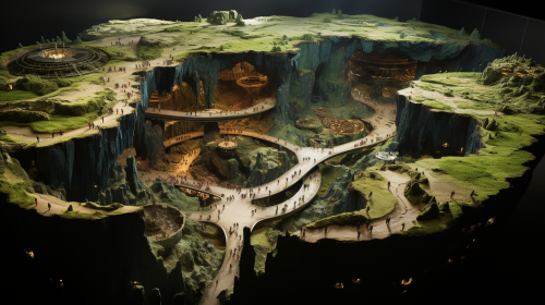 an advanced alien pit, lined with forcefields, monumental scale, birds eye view --ar 16:9 --s 220