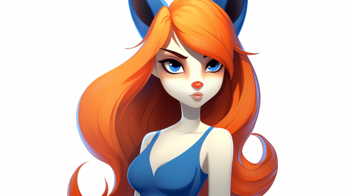 cartoon fox-girl characterat ally with a "stop" sign, white background, minimalistic design, colored digital art , orange, shades of blue colors --ar 16:9
