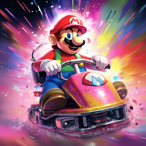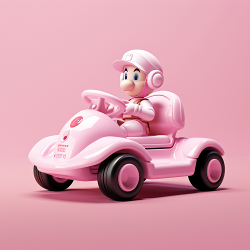 Mario Kart with pink background and a rainbow minimalistic digital art