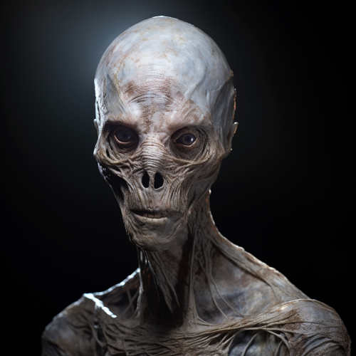 an image of a humanoid male figure, similar to a surface human but with subtle differences hinting at their subterranean origin. Imagine a being with slightly larger eyes, reflecting an adaptation to lower light levels. Their skin has a faint luminescence or iridescence, hinting at a biological adaptation to their underground habitat. slightly elongated neck and fingers, conveying a harmonious integration with the underground environment while retaining a humanoid form. Emphasize these differences while maintaining an overall humanoid appearance, indicating a shared origin but with adaptations suited to their subterranean existence.