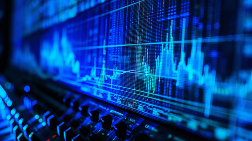 audio spectrogram on a angled computer screen of an audio compressor limiter --ar 16:9 --v 5.0