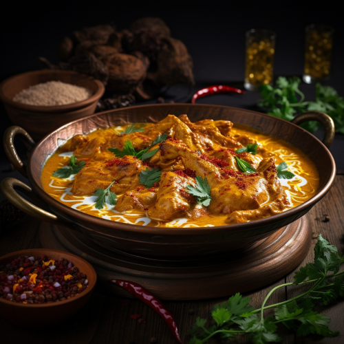 Delicious Chicken Curry Dish on Fanciful Wooden Table