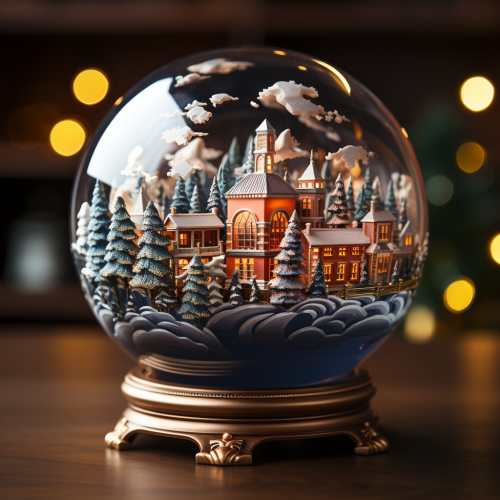 Inside transparent glass globe, fairytale Christmas village with Christmas decoration, Christmas white blurred background with Christmas train, --style raw --stylize 750 --v 5.2