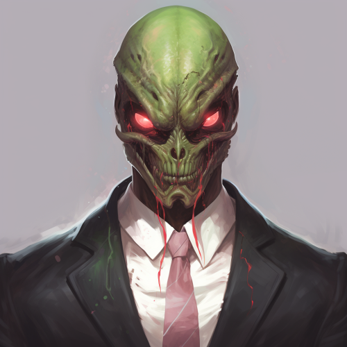 Gangster Alien. Male. Portrait. --style 3fsE3uZyG4D --v 5.2 --no guns