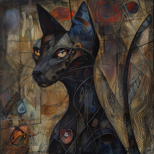 Crie uma imagem de um gato persa vestido com um kimono elegante. O kimono deve ser detalhado, com padrões tradicionais e cores vibrantes, como vermelho, dourado e azul, refletindo o estilo clássico japonês. O gato deve estar posado de forma majestosa, com seu pelo volumoso e macio visivelmente em harmonia com a fluidez do kimono. O fundo deve ser um ambiente sereno e sofisticado, como um jardim japonês ou uma sala de estilo tradicional, para complementar a estética do kimono e criar uma cena harmoniosa e elegante
