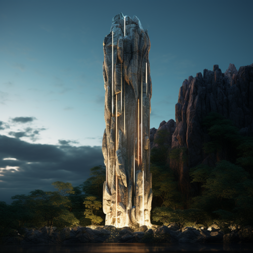 Design of 150 columns, the height of the column is 10 meters, and on its top is a illuminated rock sculpture