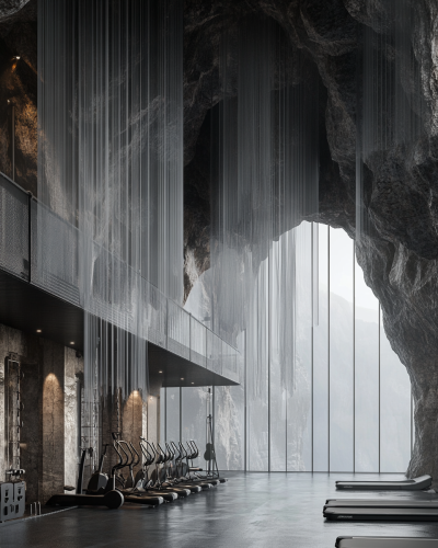 Design an ultra-luxurious master bedroom that echoes the sleek, modern aesthetics of the mansion’s desert facade. The bedroom is expansive, with an open layout that blends seamlessly into the desert landscape. The floor-to-ceiling glass walls offer unobstructed views of the vast desert horizon, allowing natural light to flood the room during the day while offering a panoramic view of the stars at night. To maintain privacy, automated sheer curtains are integrated into the design, with the option to switch between full blackout or transparent modes. The bed is a grand, low-profile platform design with a rich leather or suede headboard in deep, neutral tones that complement the exterior stone colors of the house. Soft organic fabrics in sandy and earthy tones are used for the bedding, enhancing the connection to the desert. Behind the bed, a large accent wall made of textured desert stone mirrors the raw beauty of the landscape outside, while subtle warm LED lighting embedded in the wall casts a soft, ambient glow in the evenings. The floor is sleek and minimal, crafted from polished stone or marble in a light, sandy tone, mirroring the exterior materials. A plush, oversized area rug made from natural fibers in beige or ivory tones adds warmth and comfort underfoot. The ceiling features recessed lighting and a large statement chandelier, perhaps made from brushed metal or a modern geometric design, suspended above the bed. To one side of the room, a cozy seating area is positioned by the glass wall, featuring a pair of contemporary armchairs in a soft neutral fabric, along with a sleek glass coffee table. This area is perfect for morning coffee while enjoying the sunrise over the desert or for winding down in the evening. A sleek, built-in fireplace with a [...]