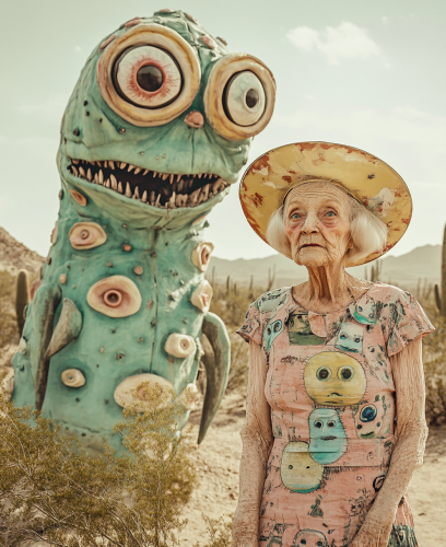 A man standing below a giant cactus, the cactus have a lot of arms, in the desert, by Tim Walker and Yoshitomo Nara, red background, minimalism, hyperrealistic, cinematic, photographed from distance, motion blurred, grainy film noir style, red filter, low contrast, ultra realistic, black shadow figure, vintage, dark red background, blurry, glitched photo, --ar 51:64