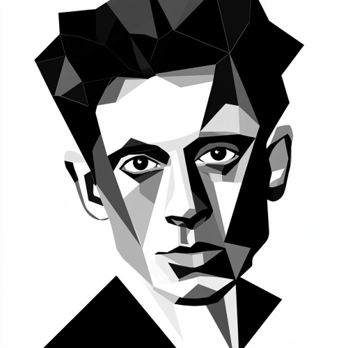 A black and white minimalist portrait of Sam Altman, depicted using sharp, geometric shapes while preserving key facial features. His distinctive curly hair is represented by angular, abstract waves. His face has a strong, angular jawline formed from bold, straight lines. His eyes are small, almond-shaped negative spaces, and his eyebrows are sharp, angled lines. The nose and lips are simplified into clean, geometric forms, with his nose as a thin triangular shape and his lips as a small horizontal line. The overall design uses high contrast black and white, with no shading or soft curves, ensuring a balance between recognizable features and the abstract, geometric aesthetic. The portrait is tightly composed, with strong use of negative space.