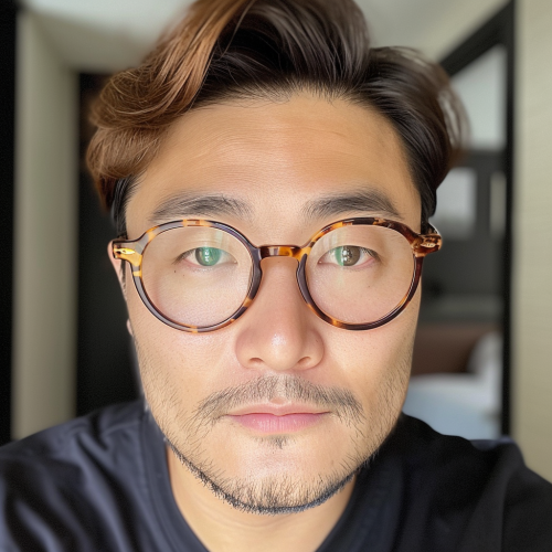 I work as an in-house designer for a Korean male company in my late 30s and am the head of a family with two babies. I wear horn-rimmed glasses and love alcohol and food, but I try to keep it under control with regular exercise. --v 6.0