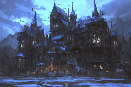 a god-like giant cybernetic man made of wires and metal crashing into a building to the ground + horror + art style of Capullo, Brom, Whelan, aly fell rutkowski, art germ, rossdraws, and franzzeta + art station + ultra detailed + hyper realistic + 8k --ar 3:2 --niji 6
