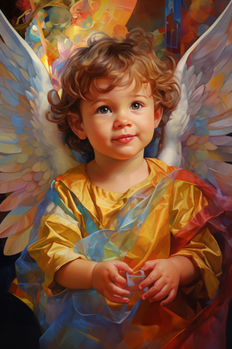 oil painting, cute little angel, split lighting, wide light, hyper quality , very clear lines, very detailed, Renaissance style, vibrant colors , , disney, 3d --ar 10:15