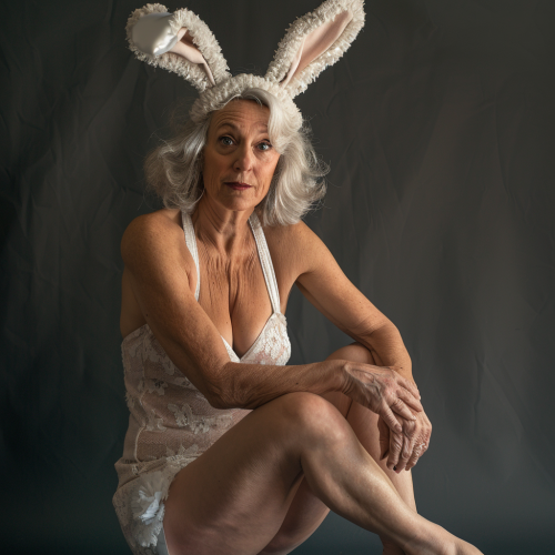 attractive mature female wearing bunny ears, very detailed, very realistic faces, legs can be seen, professional camera, long shot --v 6.0