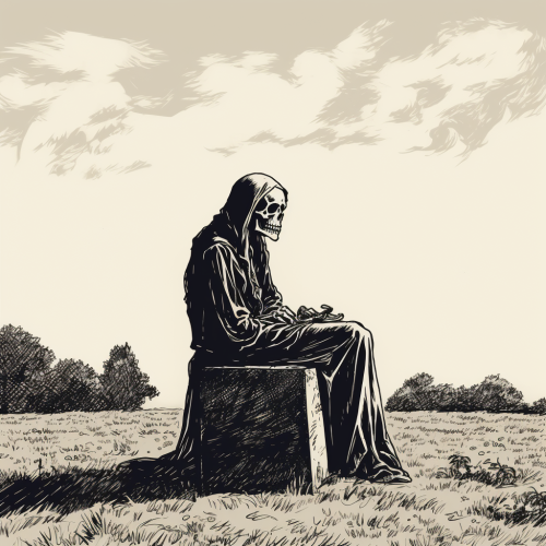 Detailed illustration of dark demon on granite headstone