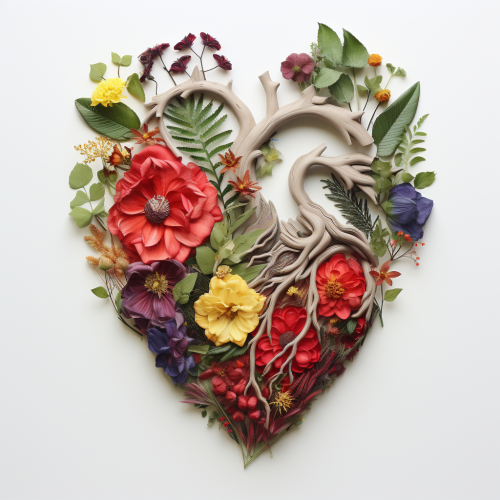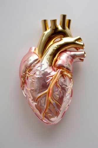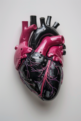 large area of blank background, minimalist product photography of an artificial human heart assembled of plastic and metal components, shades of black and pink --ar 2:3 --v 6.0